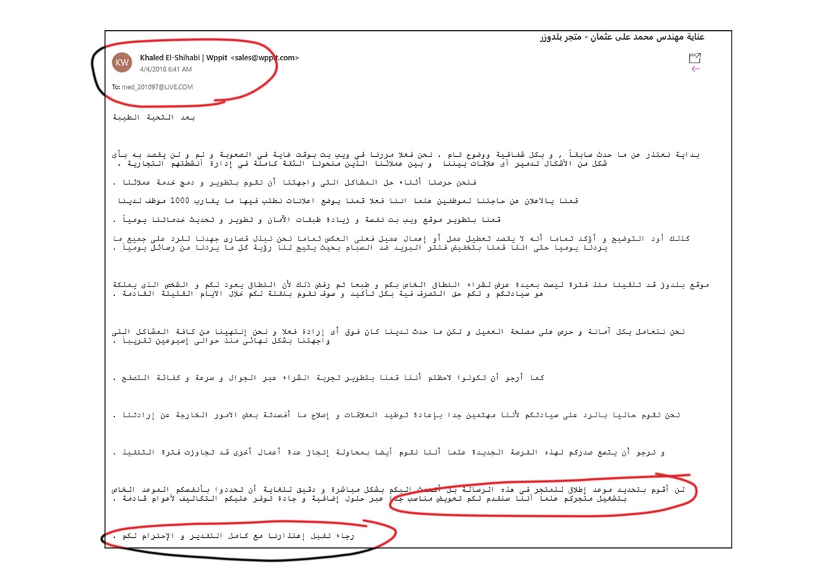 بدات قصتي عند البحث عن شركة متخصصة لعمل متجر الكتروني https://e.top4top.net/p_9394apfz1.jpg ، وعند البحث مرارا وتكرارا وجدت موقع "ويب بتwppit.com" اعجبنى التخصص الموجود به وبالمحتوى المذكور رغم اني بحثت كثيرا ووجدت شركات اخرى ولان التواصل كان اون لاين **ان المحتوى من اكثر الاشياء اللتي جذبتني لكني لم اعلم انها كانت مصيدة وفن في ترويج نظام الاحتيال والسرقة الخاص بهم حتى يكون الامر متقنا .. عند بداية التواصل عن طريق الايميل ومن ثم الواتساب لدفع الخدمة كان وقتها العرض مقدم على باقة huge e store مبلغ 1900$ بدلا عن 3800 $ وترددت كثرا الا انهم كانوا يرسلو لي التذكير عبر الايميل لاكمال دفع الخدمة بشكل كبير جدا واعتقدت ان ذلك اهتمام بالعميل لم اكن وقتها اعلم انه الانجاز في احتيالهم على المبلغ وتم الاتفاق بعد نقاشي معهم عن طريق الخدمة ان المتجر سياخذ 45 يوما كحد اقصى ، ومر الوقت وبعد دقع التكلفة على اسم شخص اخر ارسلوه لي لم يكن مدرجا ضمن فريبق العمل لديهم عبر الويسترن يونيون لم يعد الاهتمام كما كان قبل دفع الخدمة ، وبداول معي اولا بحجز الدومينوذكرتهم في حالة لم يتم تنفيذ العمل بالشكل والوقت المطلوب اخبروني انه من ضمن سياستهم ارجاع التكلفة في حالة حدوث ذلك . وبدا العمل بعدها وانتظرت بعد حجز الدومين علما ايضا انه تم الاتفاق على تحويل الدومين وكل البيانات حالما تحتاج ذلك وظللت شهر و15 يوما ومن ثم تواصلت معهم.. واخبروني انهم تم الانتهاء من انشاء 500 قسم مناقسام المتجر وان المتجر كبير وما الي ذلك من الاعذار ، تجاوزت عن تلك الاعذار وظننت ان بالفعل المتجر يحتاج وقت كافي .. بعدها ارسلولي شعار للموقع وكان سيئا جدا ولدواعي تلاشي الوقت ال**تهلك ارسلت لهم شعار من تصميمي بالاعتماد ، وفجاة انقطع الموظف المختص بالتواصل معي عبر الواتساب قرابة 3 اشهر وانا في قمة انزعاجي وغضبي وبدات بالتواصل معهم عبر الايميل وساعرض جميع الايميلات التي تم التواصل عليها اسفل المقال، ولكن كل 4 ايام ياتيني الرد او لم ياتيني بعد ارسال عدة ايميلات ولا يتم الرد الا عندما ابدا في مطالبتي بانهاء المتجر او ارجاع التكلفة .. ثم بدات سلسلة الاعتذارات الكثيرة من الموظف المختص ومر الوقت سريعا وان الت** الاعذار لعله اخر عذر وما الي ذلك وكانت الاعذار كلها تتلخص في الموظف ال**ؤول عنك ترك العمل ، او الموظف كان سيئا ، او بدانا بتوظيف .. ستنتاقش الادراة ذلك .. حجج وهمية لاجل ان تترك انت الخدمة ولا تتواصل معهم مرة اخرى سياسة مماطلة واستفزاز للخروج عن شعورك .. لكن لا احد يجيب وعندما بدات بتهديهم بعد مرور 9 اشهر حتى الان على طلب الخدمة في حين انه كان المقرر انهائها في 45 يوما. واخر ما تم عندما تم تهديدهم اني ساكشف حقيقتهم للجميع خصوصا اني بدات اكتشف انهم قاموا بتغيير العرض الخاصة بالباقة التي تم الاتفاق عليها من 1900 بعد الخصم الذي كان بالاساس 3800 ليصبح 450 دولار .. حينها تواصلت معهم كيف يتم تنزيل مقدار الخصم لاقل من 85% بدا الشك يثاورني وبدات اتابع عروضهم وما تم اكتشافه انها محاولة لجذب الناس والاحتيال على مبالغهم واموالهم وعندما بدات انسخ كل ايميلاتهم واعذارهم وارسلتها لهم واخبرتهم اني ساستخدم تلك الايميلات لنشرها وكنت معهم واضحا جدا لاجل ان يهتموا بي اكثر ويبدا مدير الشركة او الاشخاص المعنيين بالحديث معي لمحاولة تهدئة الامور وجدت العكس لم يجب احد ولم يتصل بي احد حتى الايميلات لم يراسلني احد .. وقتها تاكدت ان شركة او موقع "ويب بت wppit.com" نصاب من الدرجة الاولى خصوصا انه خلال تلك الفترة لا يريدون ان يفصحوا عن مكانهم ولا ارقام تليفوناتهم .. والارقام التي تم التواصل معها في بداية الخدمة تم اغلاقها كاملة . وعنما تم تهديدهم بالتشهير وحتى يكون موقفهم سليم تم انشاء صفحة الكترونية سيئة جدا كانها متجر الكتروني ووضعوا عليها الشعار ورفعوها حتى لايظهروا انهم نصابين وغير ذلك واليكم الصور المرفقة على الايميل والايميلات التي تم التواصل معها xteam@wppit.com - sales@wppit.com - E-Signature@wppit.com - amp@wppit.com الرجاء ال
