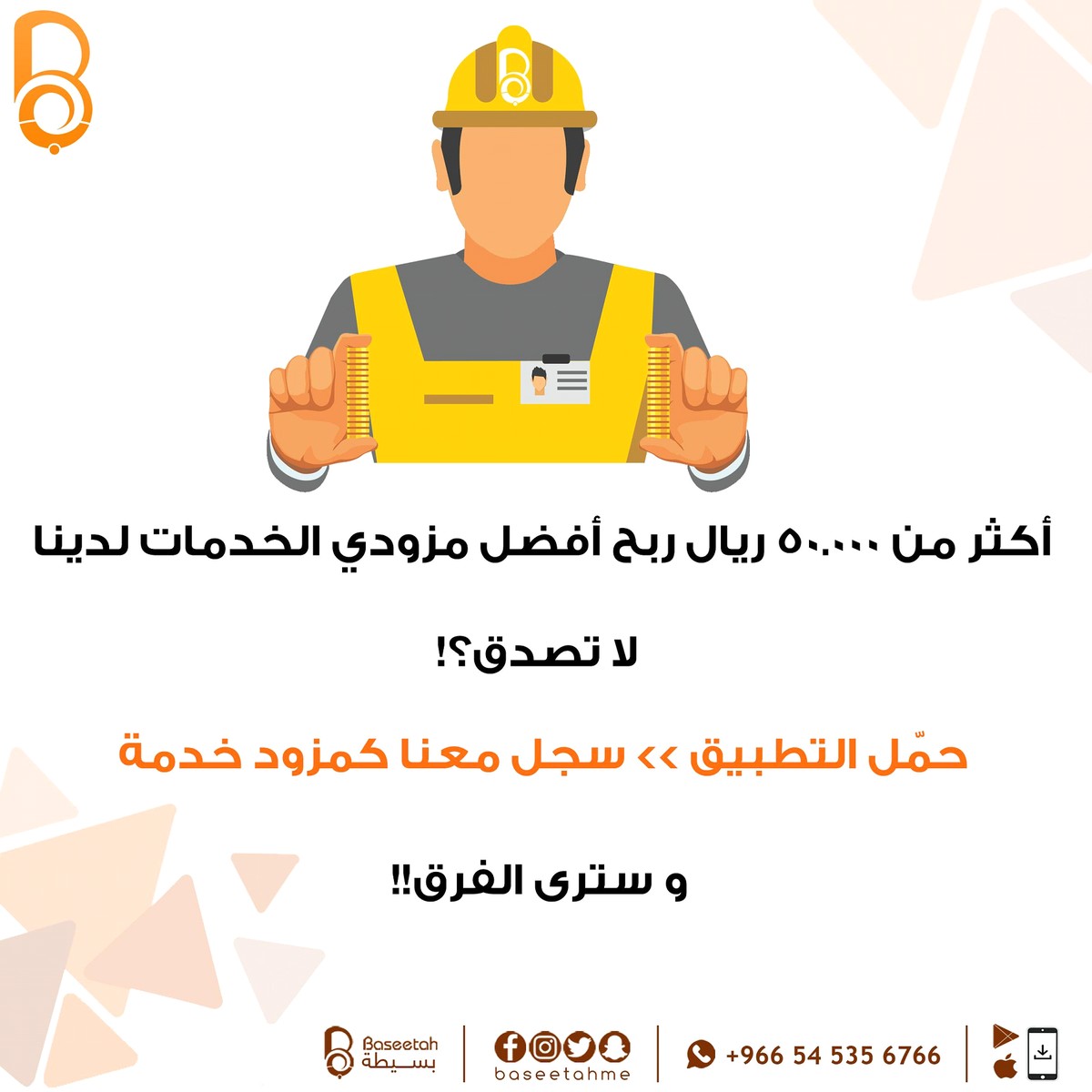 أوّل "سبّاكة" سعودية تسجل خدماتها في تطبيق بسيطة هشام محمد - خبر صحفي https://i.suar.me/5xLYQ/l في حديث مع أمل م.غ. أعربت عن سعادتها في الانخراط بالعمل في تطبيق بسيطة لصيانة المنازل، حيث تعلمت أمل السباكة من زوجها ال**جل **بقاً كمزود خدمة في التطبيق وأصبحت تلبي احتياجات المنازل التي لا يتواجد رجل بها، وتقول إنها الآن تحقق أرباحاً ت**ر من خلالها الدخول في دورات صيانة للكهرباء، لكي تضيف خدمة الكهرباء وتصبح أول كهربائية سعودية تقدم خدماتها عبر تطبيق بسيطة. تطبيق بسيطة هو الحل البسيط لصيانة منزلك على **توى المملكة يساعدك في إنجاز مهام الصيانة كافة بضغطة زر سباكة - تكييف - كهرباء - نجارة - نظافة - تنسيق حدائق - نقل عفش - ** وتركيب أثاث - حاويات *** التطبيق: </title><meta charset="UTF-8"><meta name="viewport" content="initial-scale=1, maximum-scale=1"><title>Baseetah كما يقدم التطبيق عرض حصري لمزودي الخدمة،عند التسجيل تحصل على 25 ريال رصيد في حسابك، العرض لفترة محدودة. https://i.suar.me/a3vAZ/l https://i.suar.me/LOz6G/l https://i.suar.me/2XWl3/l |