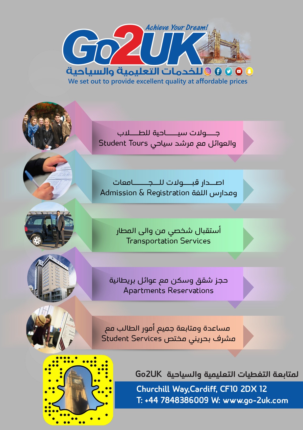 كورس مكثث لمدة 6 شهور بسعر 1450 دينار بحريني فقط عرض خااااص مكثث لدراسة اللغة في بريطانيا لفترة محدودة جدا أقوى عروض لدراسة اللغة الانجليزية في بريطانيا كورس مكثث لمدة 6 شهور بسعر 1450 دينار بحريني فقط £2,980 $3,850 14,439 القيمة تشمل الاتي: المواصلات "من والى المطار" تعلم اللغه "22 ساعه بالاسبوع" شهادة معتمدة من قبل المجلس الثقافي البريطاني تطوير مهارات التحدث مع اجانب في مقهى خارج المدرسة أشراف ومتابعة جميع أمور الطالب مع مرشد أكاديمي مؤهل رقم بريطاني مجانا اهم ما نتميز به برحلاتنا العلمية غرس الثقة والاعتماد بالنفس للمبتعثين. التشخيص الصحيح بالنسبة ل**توى الطالب والطالبه باللغة الانجليزية خلال هذه الفترة. التعود على الغربة ومعرفة الخفايا في دولة الابتعاث " المواصلات/ السكن / عادات وتقاليد المجتمع ... والمزيد شركتنا مصرحة من هيئة السياحة والتعليم البريطاني سفريات Go2uK البريطانية، Cardiff سارع بالتسجيل فالعدد محدود __________ بإمكانكم التواصُل مَعنا عَبر: 00447848386009 التواصل الاجتماعي: @Go2uk اليوتيوب: https://www.youtube.com/watch?v=aQsX...ature=youtu.be السناب: https://www.snapchat.com/add/go2uk الانستقرام: https://www.instagram.com/go2uk/ موقعنا: www.go-2uk.com https://i.suar.me/qyzml/l https://i.suar.me/e03P3/l https://i.suar.me/pzjZ9/l |