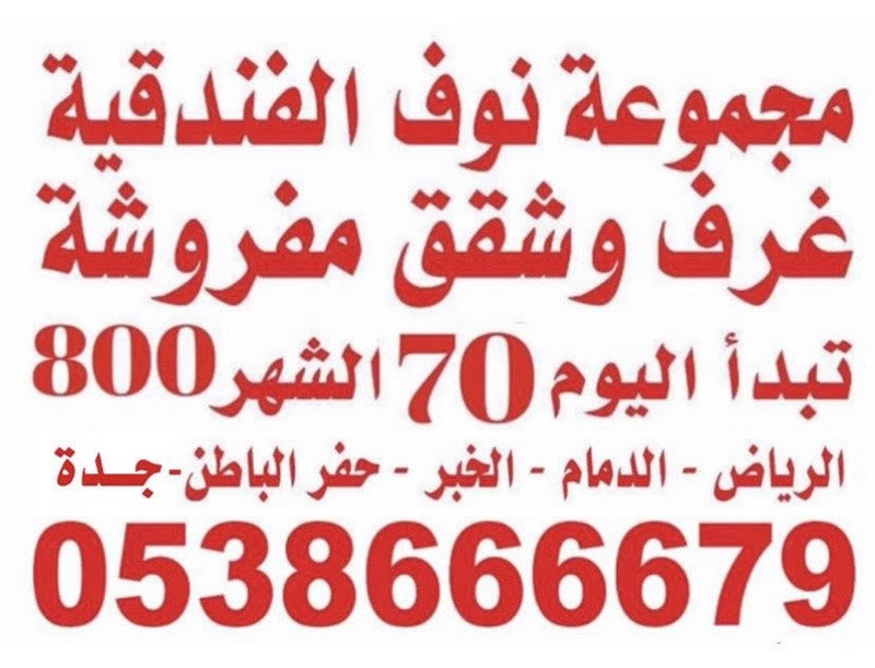 مجموعة نوف الفندقيه غرف و شقق مفروشة تبدأ اليوم 70 الشهر 800 متواجدين بالرياض والدمام والخبر وجده و حفر الباطن للمزيد يرجى مراسلتنا و التواصل معنا عبر الرقم : 0538666679 https://i.suar.me/AZ71N/m |