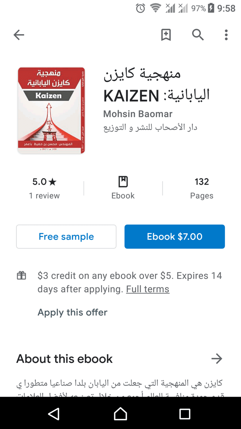 كايزن هي منهجية يابانية تهتم بالتحسينات ال**تمرة في العمليات لتلبية احتياجات العملاء لتخطي التوقعات المتغيرة في بيئة ريادة الأعمال و المنظمات الربحية . من خلال فهمك للكتاب ، سوف تتمكن كقائد أو موظف من تحقيق نتائج مبهرة في المحاور التالية : • معرفة ما هي عمليات التحسين ال**تمر حيث تعتبر من أهم شروط بقاء المنظمات و تنويع قدرتها التنافسية . • التزود بالمفاهيم والاستراتيجيات الفعالة لمنهجية كايزن اليابانية لتحديد المشكلة وحلها و تصحيح العيوب باستخدام أدوات و تقنيات کایزن. رابط الاطلاع على الكتاب و شراءه من جوجل : KAIZEN https://i.suar.me/Pgdxw/m] https://i.suar.me/Wr7Y3/m |